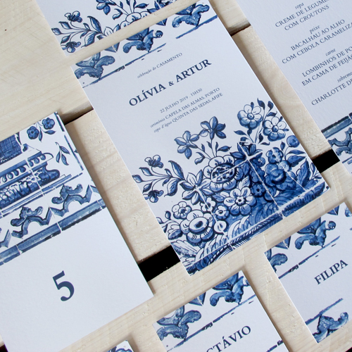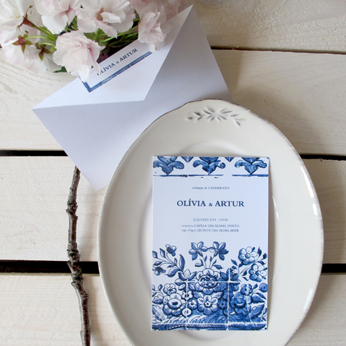 azul azulejo. convite. envelope.