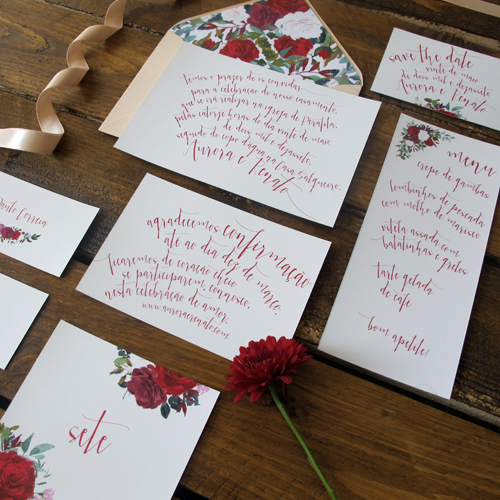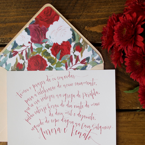 vermelho romântico. convite. envelope.