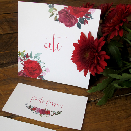 vermelho romântico. marcador de mesa. cartões de escolta.