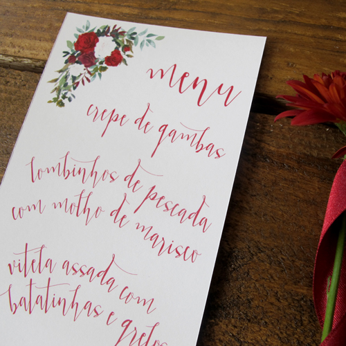 vermelho romântico. menu. detalhe.