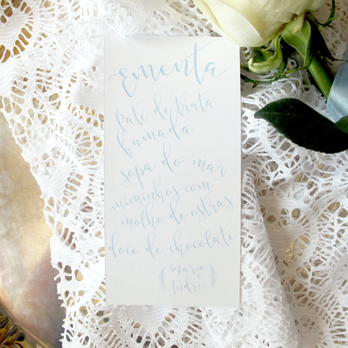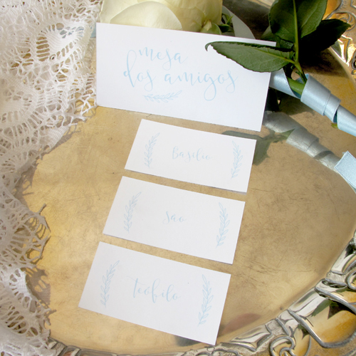 a tranquilidade do azul. marcador de mesa. cartões de escolta.